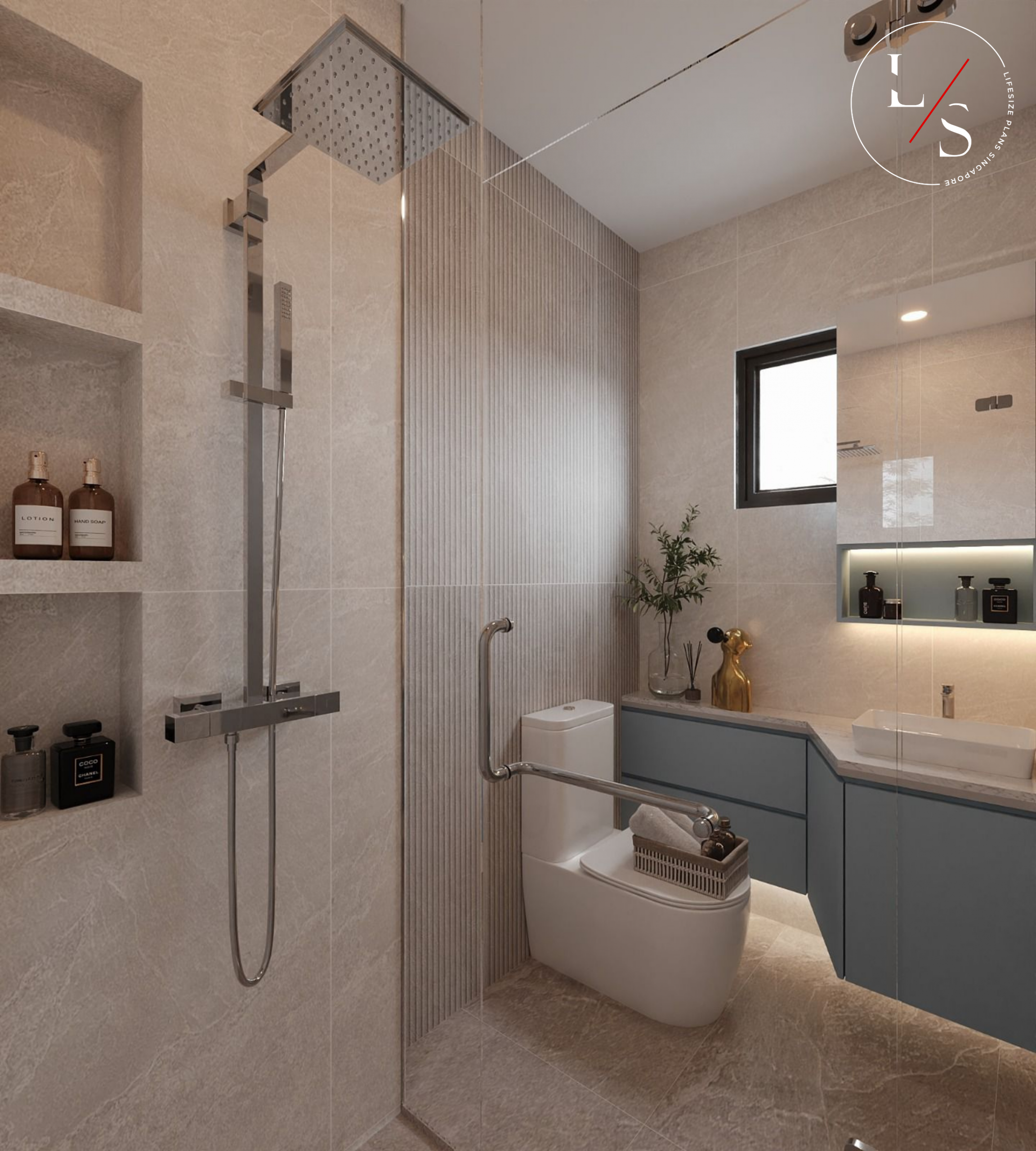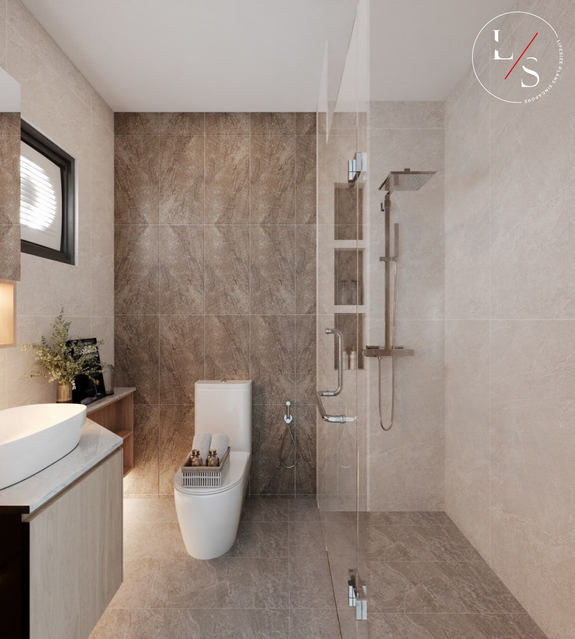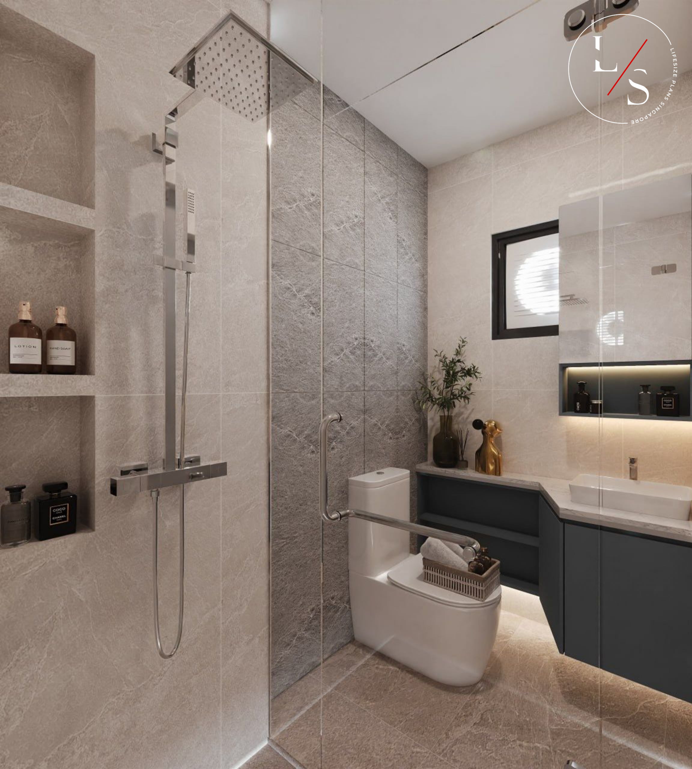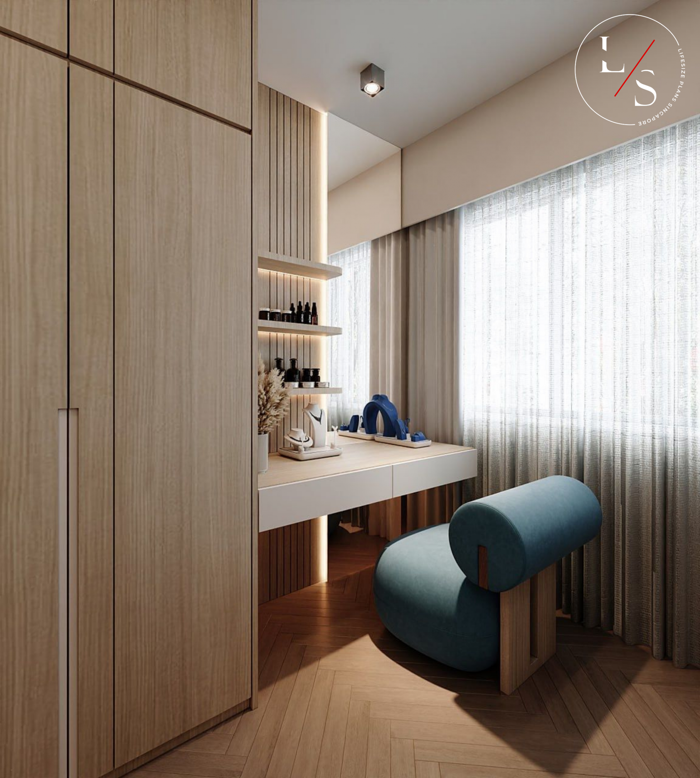 Plush seating in calming tones anchors the living area, tying together the various elements into a cohesive, harmonious environment. This home is crafted for comfortable, stylish living — grounded in warmth and quiet luxury.